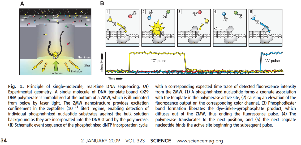 - Eid J, et al. Real-time DNA sequencing from single polymerase molecules. Science. 2009;323:133-138. doi:10.1126/science.1162986