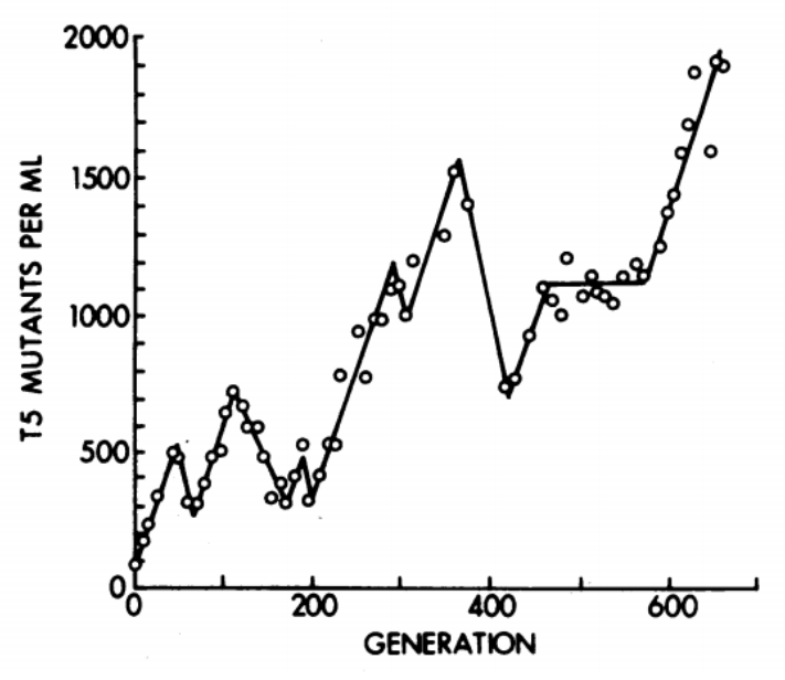 Even a “clonal” bacterial culture accumulates mutations during growth. The classic chemostat experiments of Dykhuizen & Hartl (1983) demonstrated that adaptive mutations arise and compete within bacterial populations on short timescales. In viral populations, mutation rates are even higher (\(10^{-5}\) to \(10^{-3}\) per base per replication cycle for RNA viruses), producing highly diverse quasispecies within a single infected host.